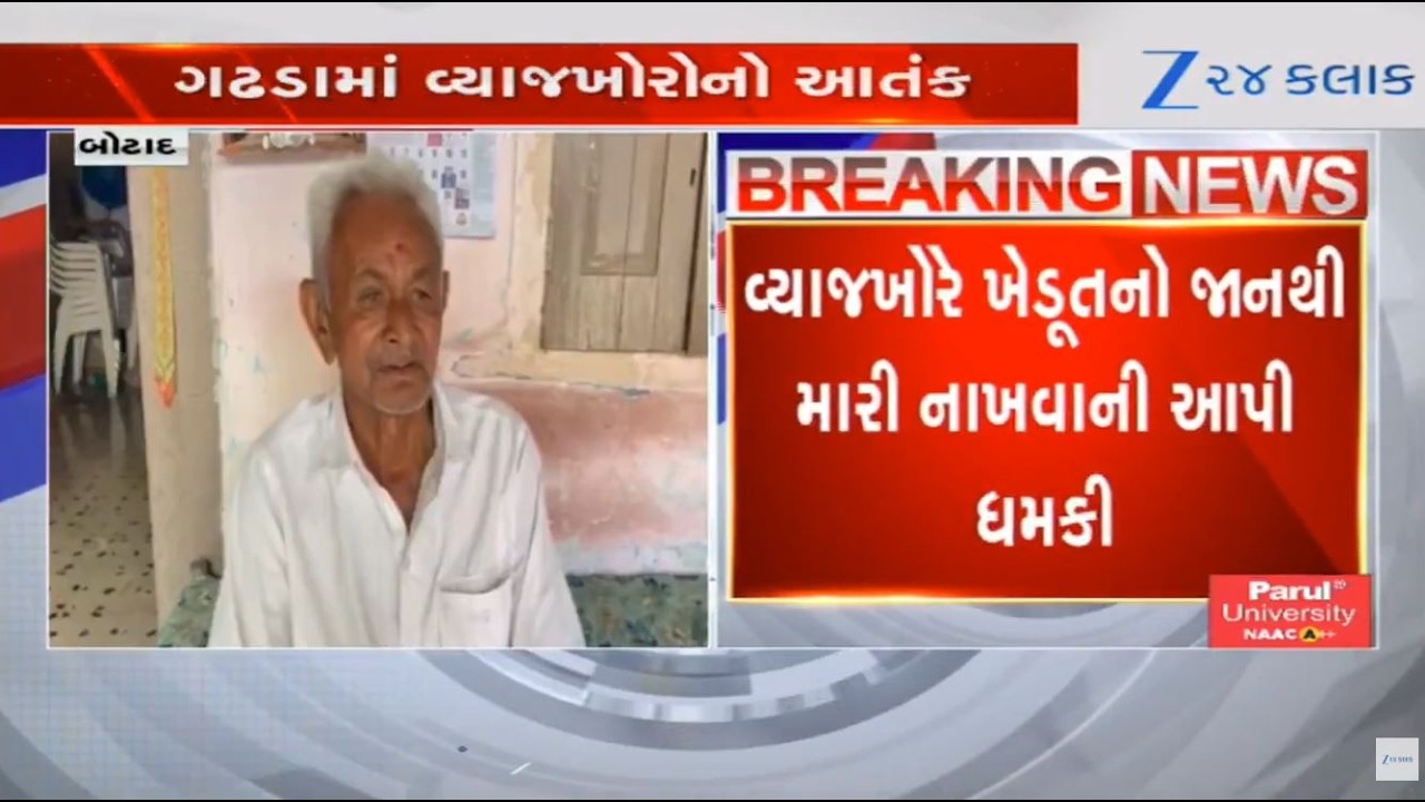 #Zee24Kalak Botadમાં વ્યાજખોરોએ ખેડૂત પાસેથી 10 લાખ સામે 70 લાખ પડાવ્યા; જમીન પચાવી પાડી જાનથી મારવાની ધમકી આપી