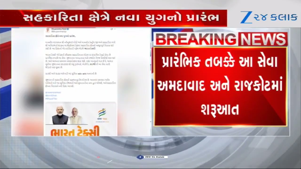 #Zee24Kalak BREAKING: CM Bhupendra Patelએ કર્યું Tweet, ‘દેશની પ્રથમ સહકારી ટેક્સી સેવાનો પ્રારંભ