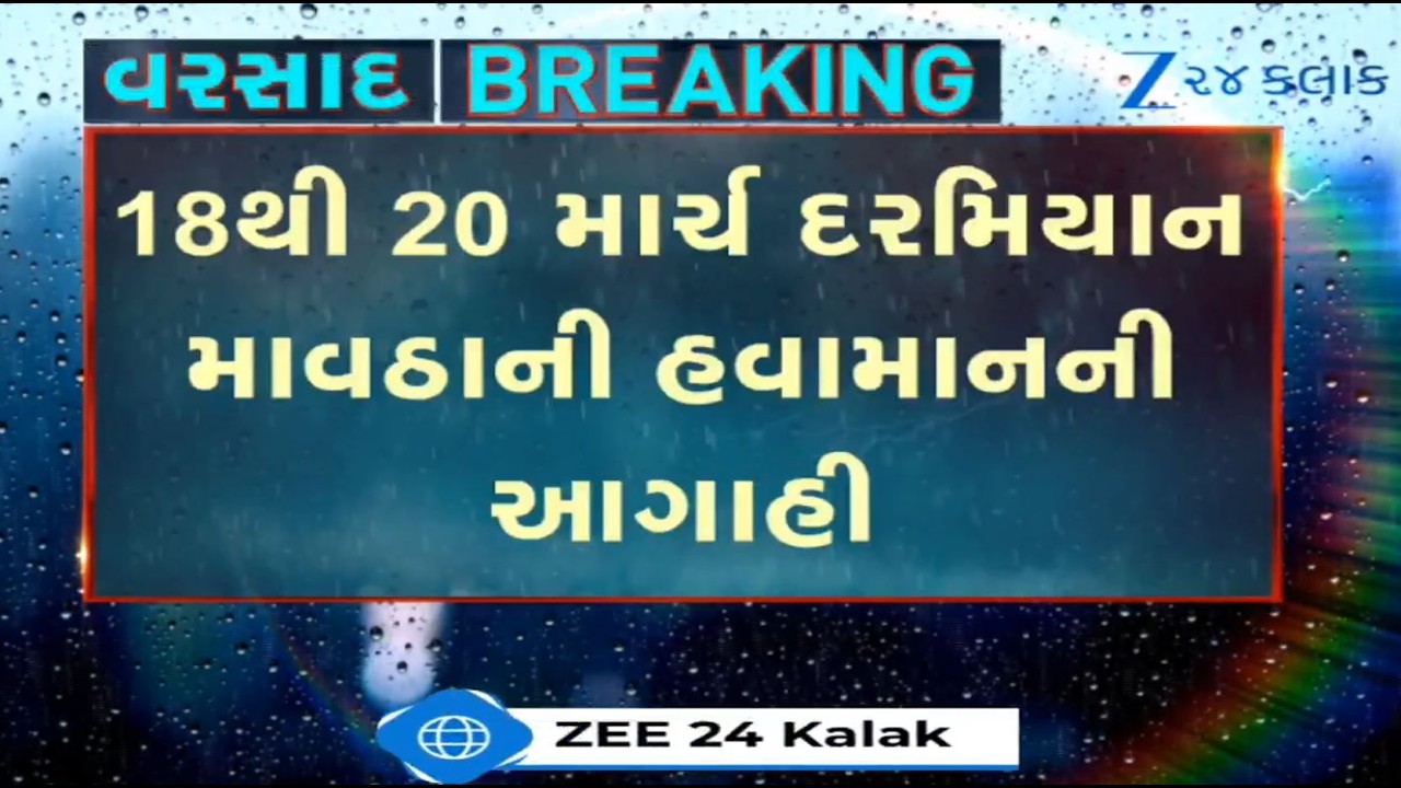 #Zee24Kalak BREAKING: MeT Dept predicts unseasonal rainfall in THESE parts of Gujarat from March 18-20