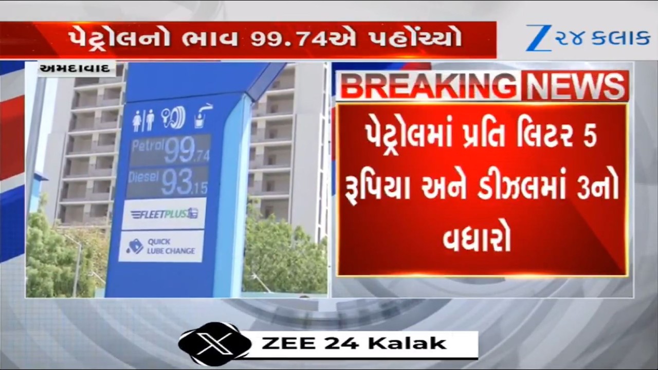 #Zee24Kalak BREAKING: Nayara pump hikes price of petrol by Rs 5/litre, diesel by Rs 3 per litre in Gujarat
