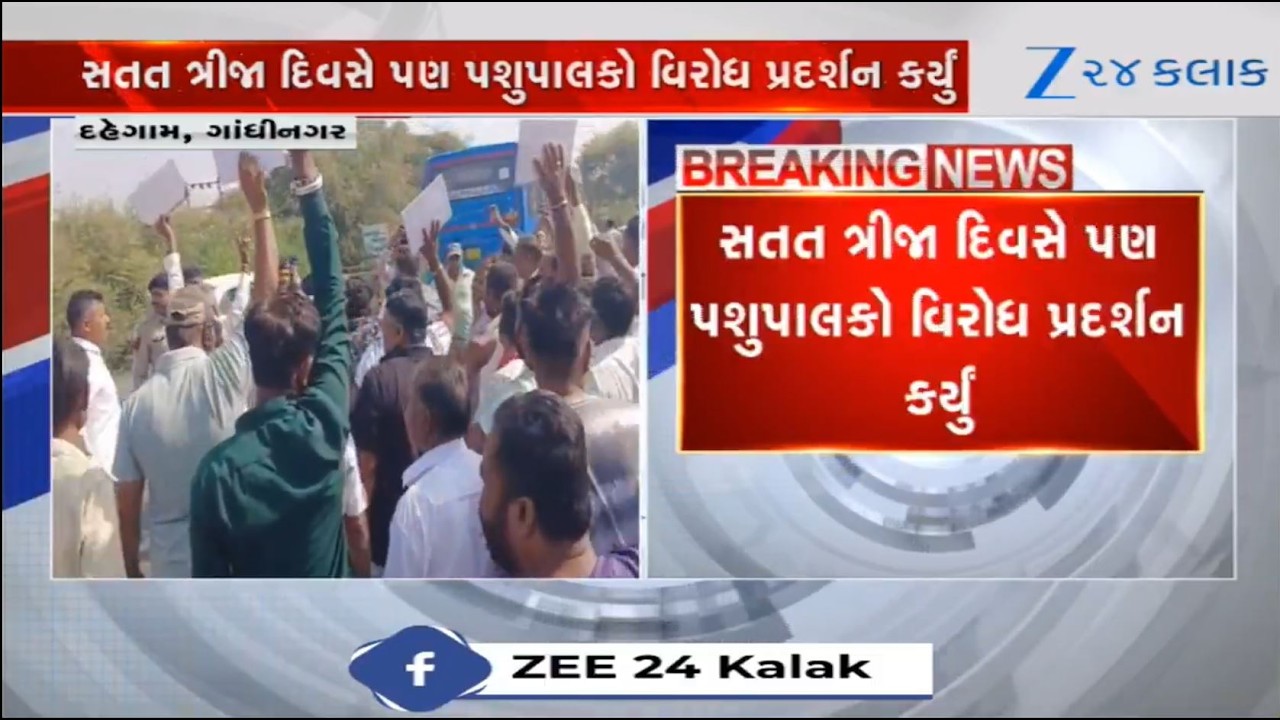 #Zee24Kalak Cattle breeders stage protest in Gandhinagar as Madhur Dairy stops procurement of milk, detained