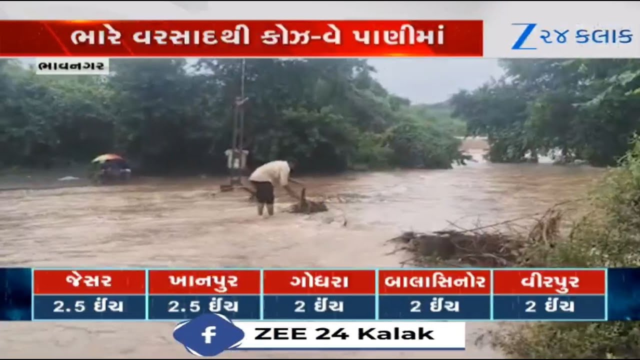 #Zee24Kalak Causeway joining Jesar with other parts of Bhavnagar submerges following heavy rains in the region