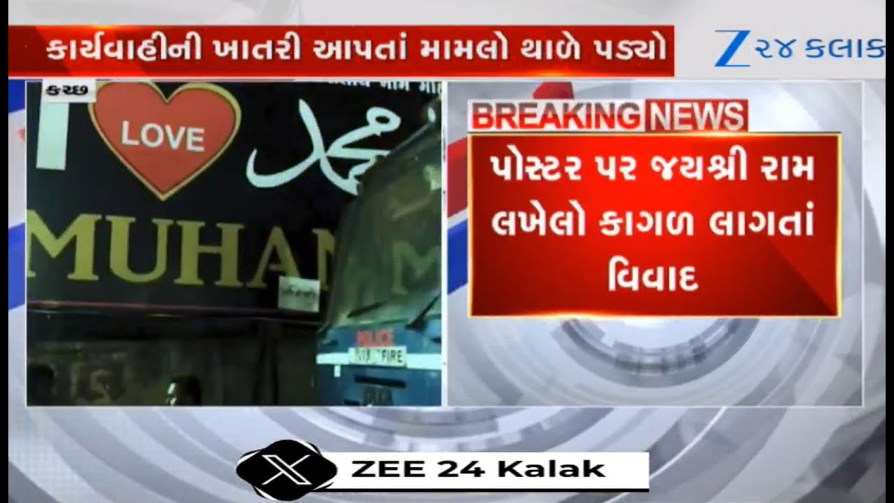 #Zee24Kalak Chaos after Jay Shri Ram seen written on ‘I love Muhammed’ poster in Kutch; situation under control