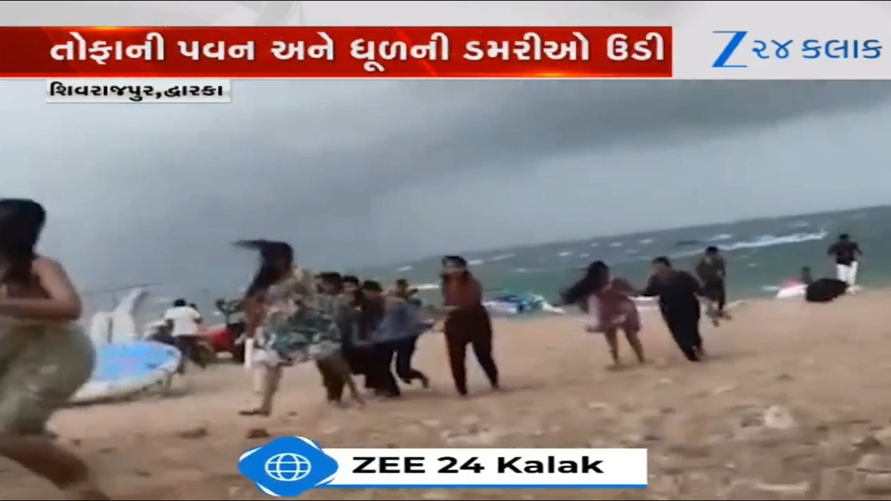#Zee24Kalak Chaos among tourists following strong winds at Dwarka’s Shivrajpur beach; video goes viral