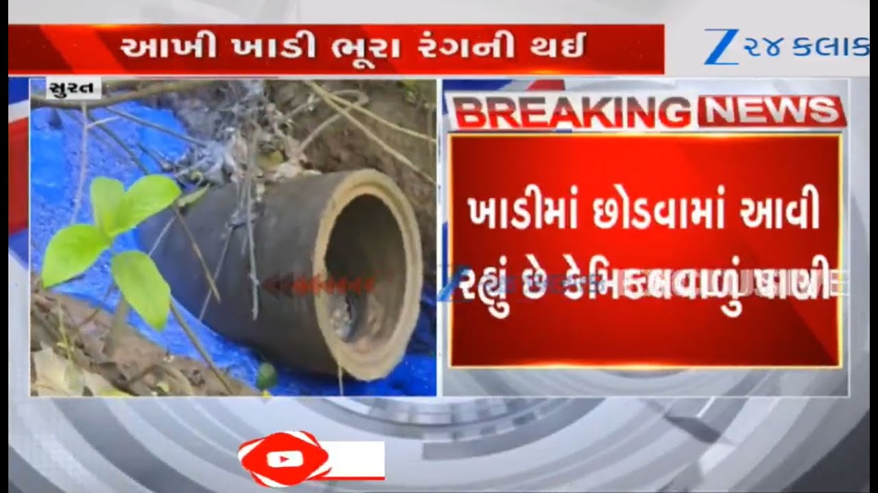 #Zee24Kalak Chemical-mixed water being released in creek at Surat’s Kamrej; video shot by locals goes viral