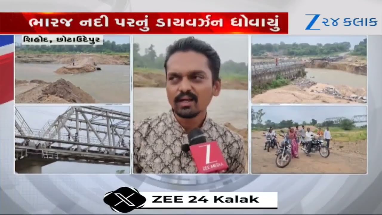 #Zee24Kalak Chhota Udepur: ભારજ નદી પરનું ડાયવર્ઝન ધોવાતા સ્થાનિકો અને વાહનચાલકોને ભારે હાલાકી