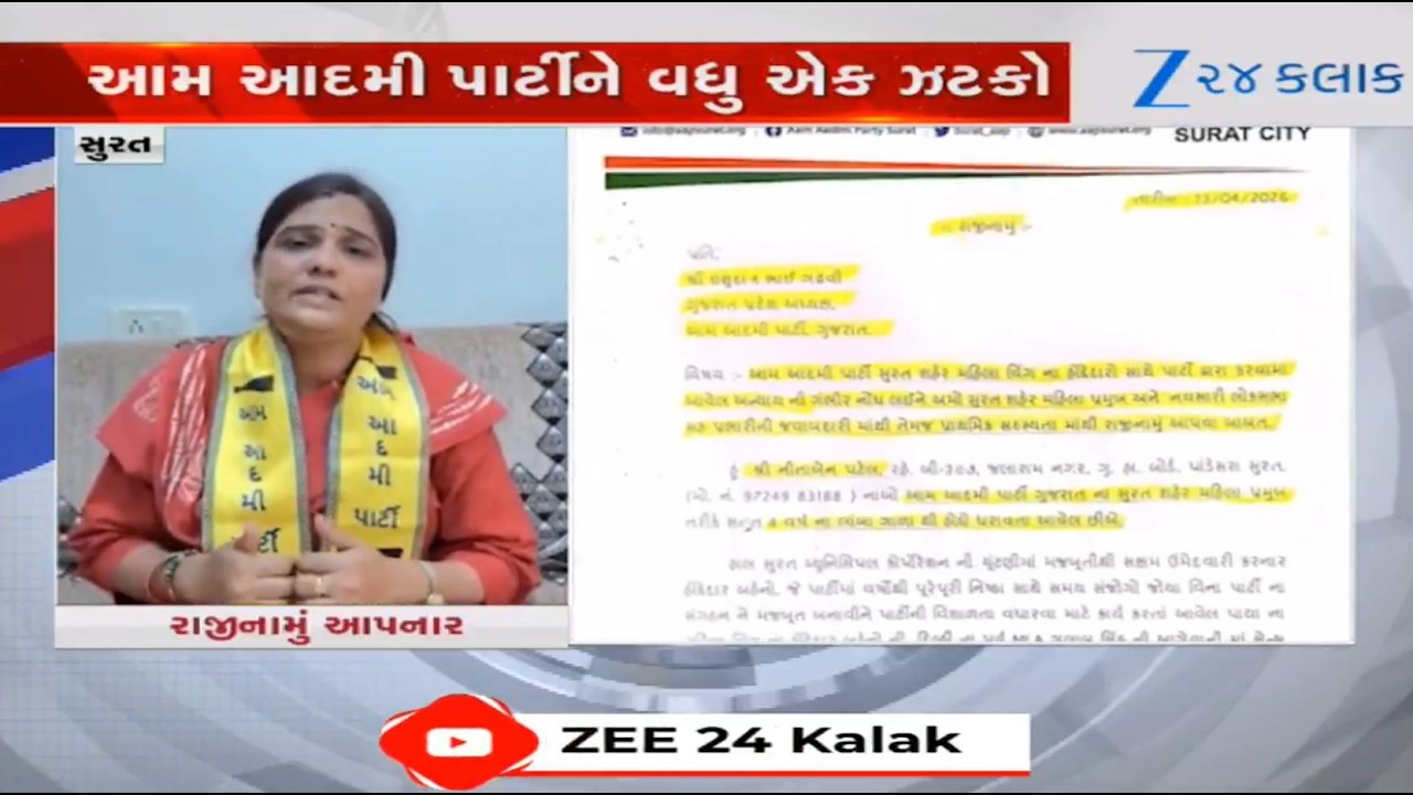 #Zee24Kalak Chief of Surat AAP Mahila Morcha resigns ahead of local body polls in Gujarat, alleges injustice