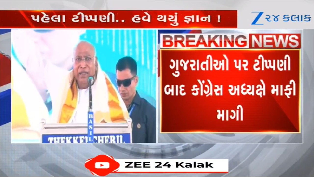 #Zee24Kalak Congress chief Mallikarjun Kharge apologizes for controversial remarks on Gujaratis; BJP reacts