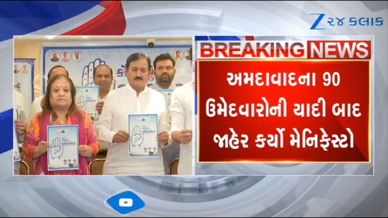 #Zee24Kalak Congress releases manifesto for local body elections in Ahmedabad, promises clean Sabarmati