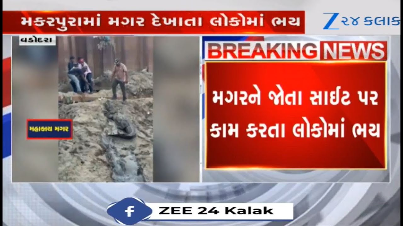 #Zee24Kalak Crocodile rescued from site of high-speed train project in Vadodara;video goes viral on social media
