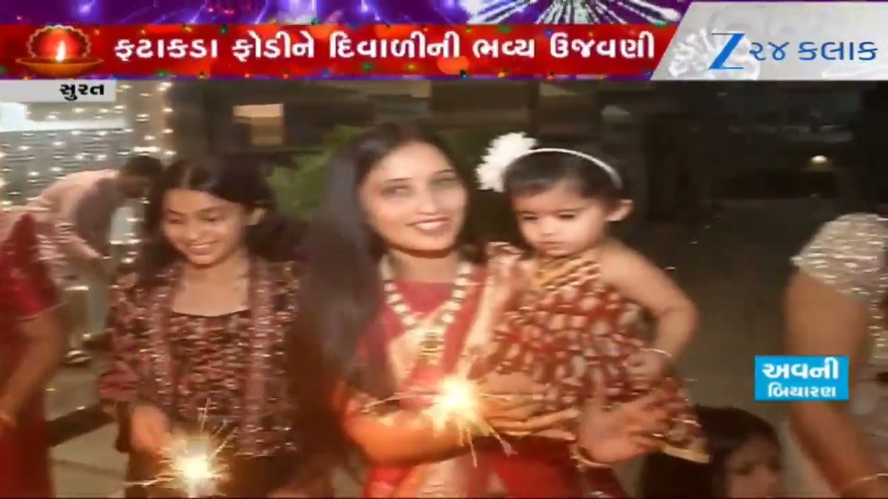 #Zee24Kalak Diwali 2025: Suratમાં નાના-મોટા સૌ લોકોએ સાથે મળીને ફટાકડા ફોડી અને ખુશીઓની રંગોળી કરી ઉજવી દિવાળી
