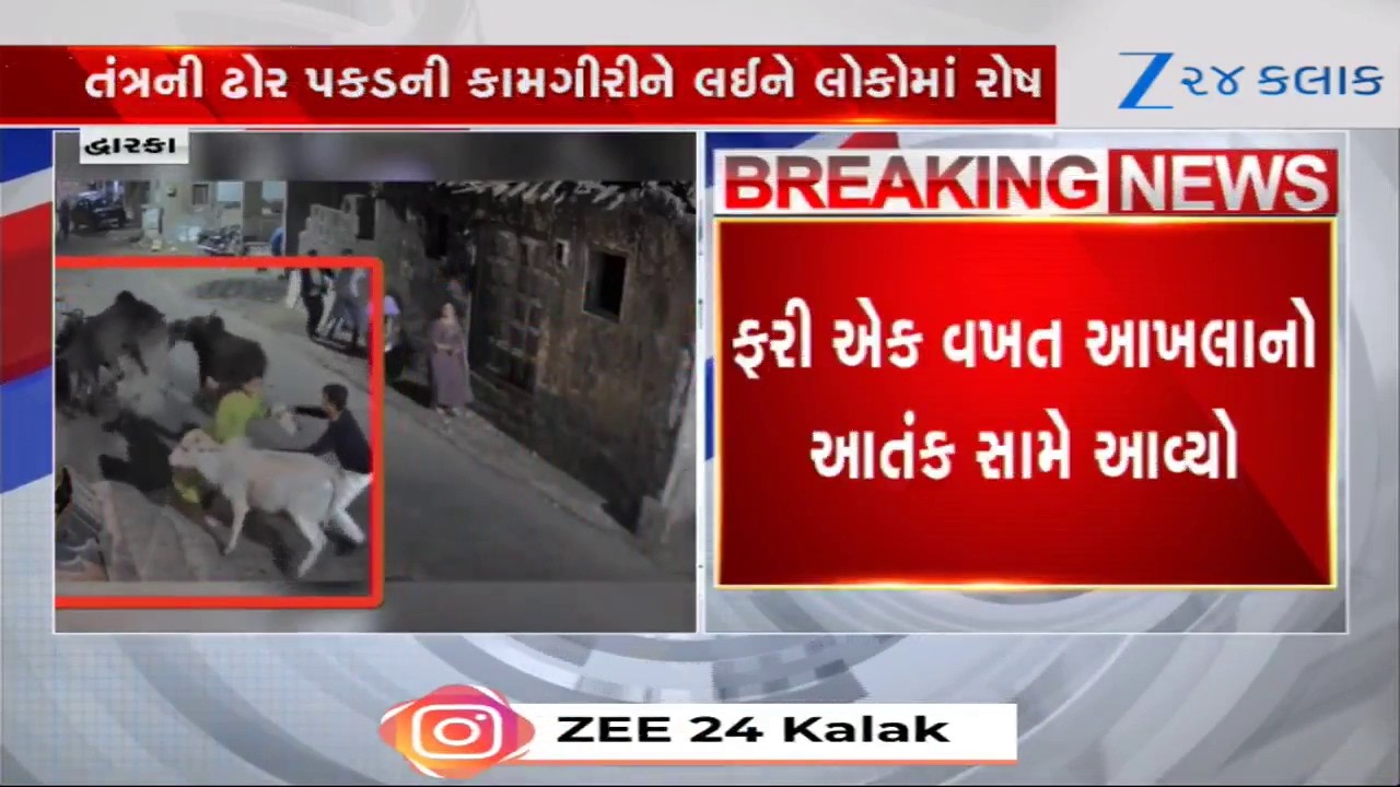 #Zee24Kalak Dwarka News: ગોમતી ઘાટ પર આખલાઓનો આતંક; 5 આખલાઓ બાખડતા ભક્તોમાં નાસભાગ, તંત્ર સામે લોકોમાં રોષ