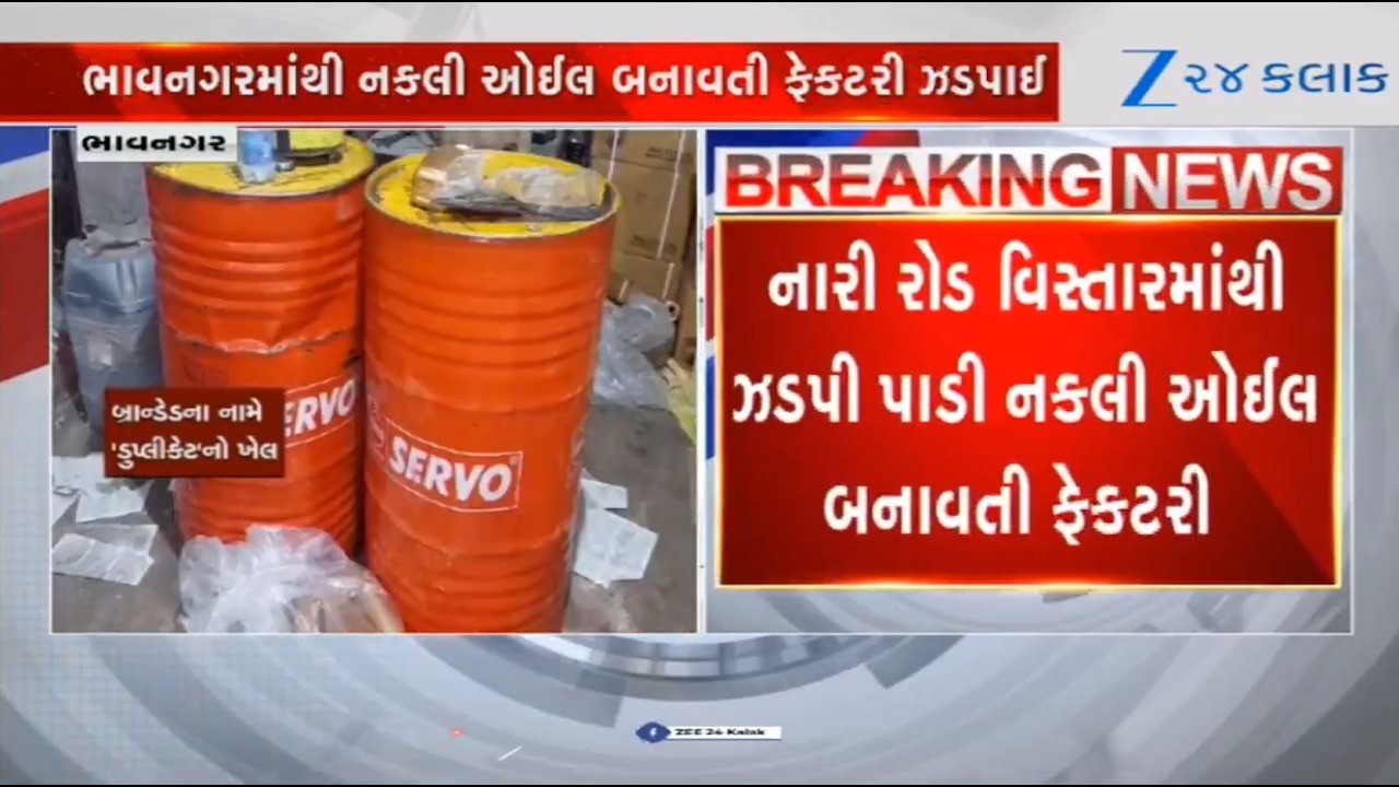 #Zee24Kalak Factory producing fake engine oils of branded companies busted in Bhavnagar’s Kumbharvada