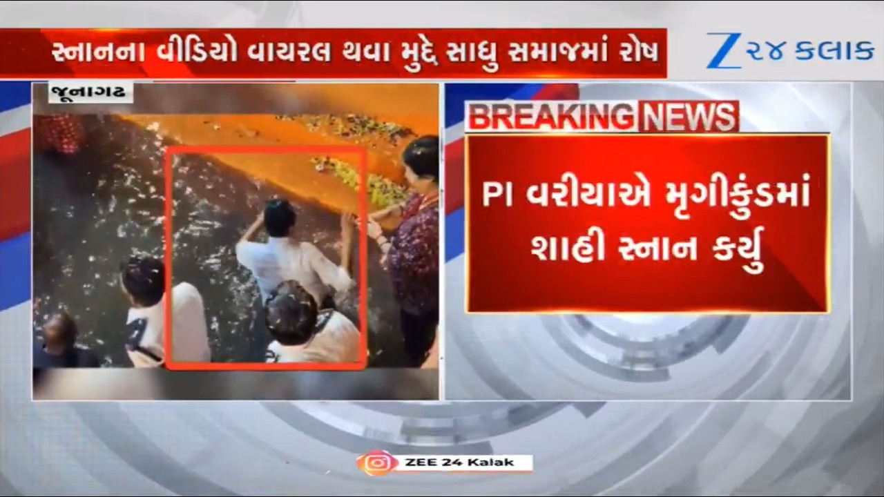 #Zee24Kalak Female PI of Junagadh lands into controversy after video showed her taking dip in holy Mrugi Kund