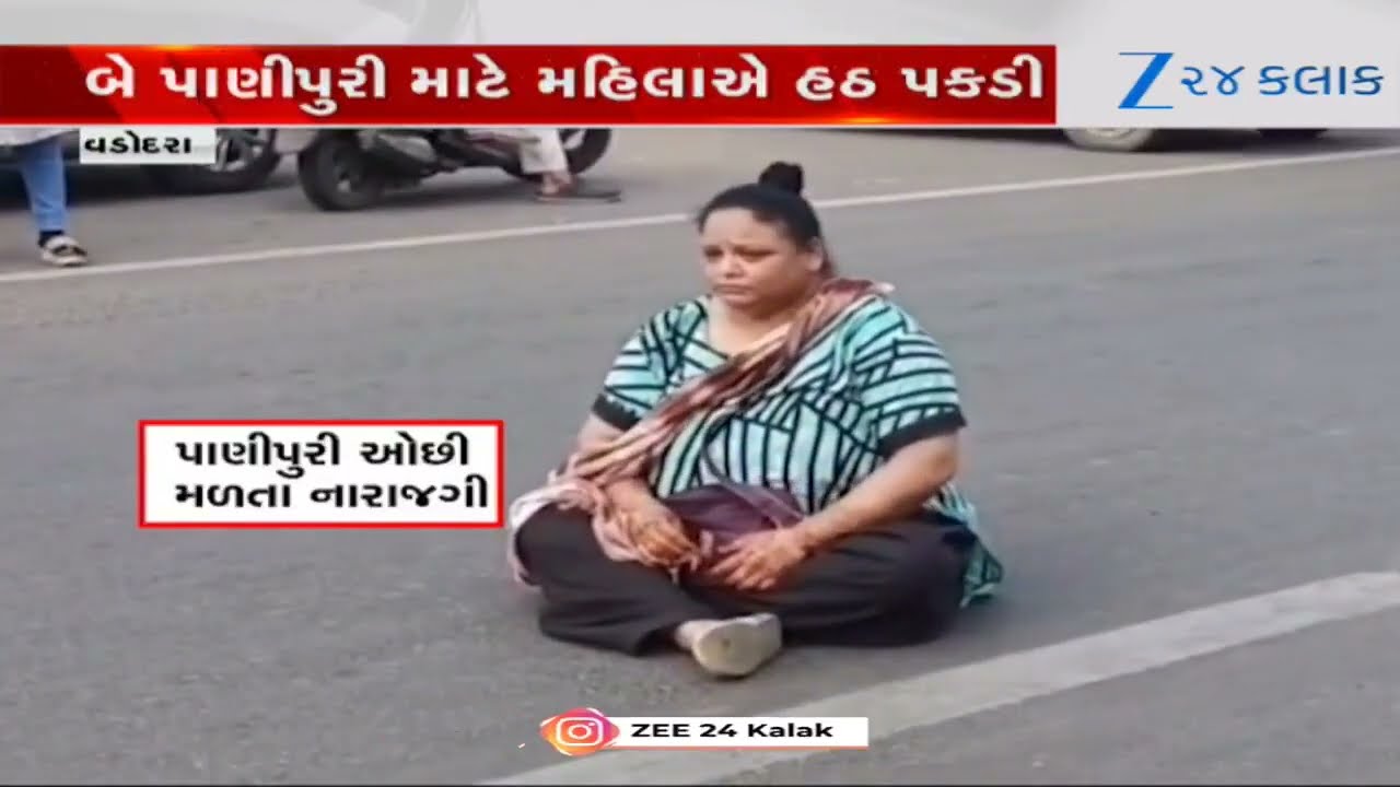 #Zee24Kalak Funny Drama! Woman Sits on Road over not getting two ‘Panipuri’ at Stall in Vadodara; video viral