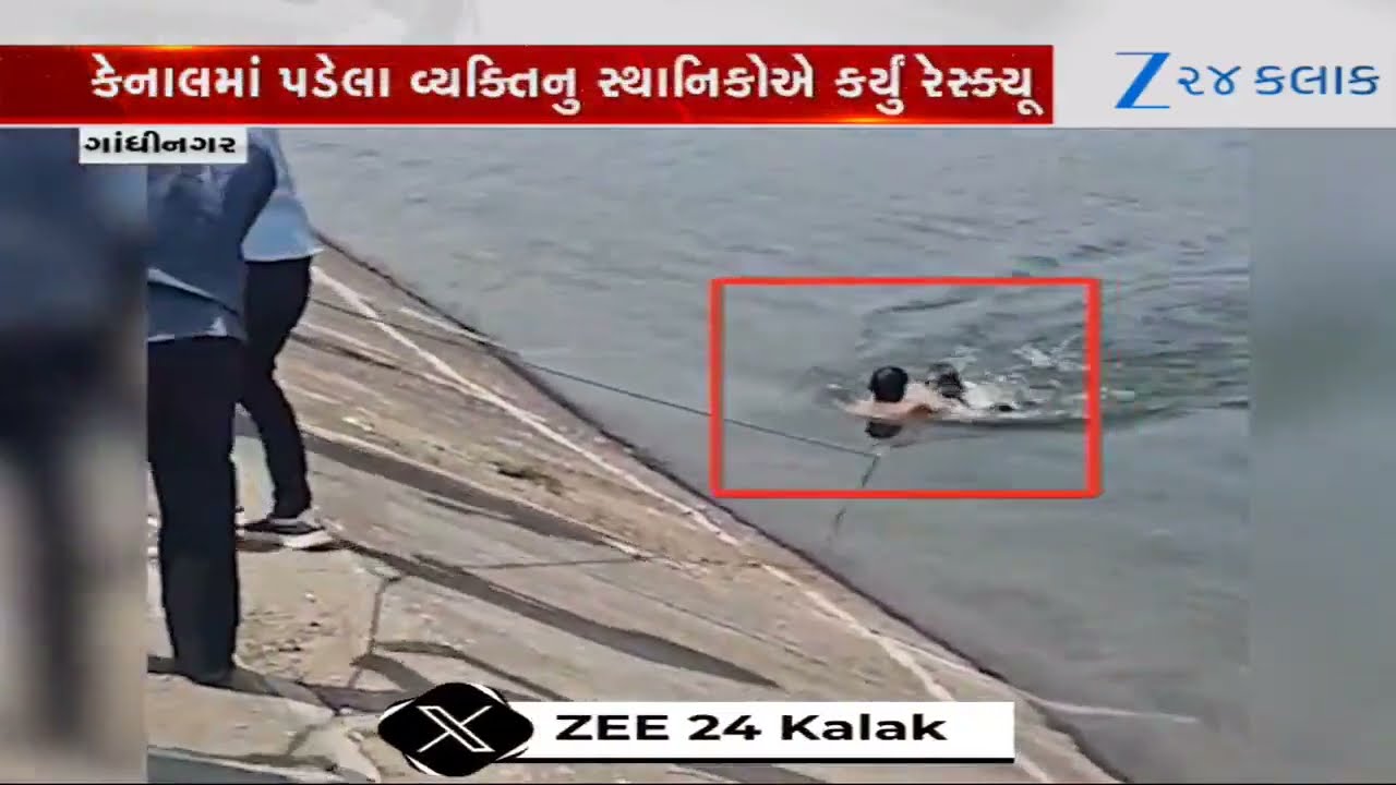 #Zee24Kalak Gandhinagar: નર્મદા કેનાલમાં ખાબકેલા યુવકનું LIVE રેસ્ક્યૂ; દોરડાની મદદથી સ્થાનિકોએ કર્યું રેસ્ક્યૂ