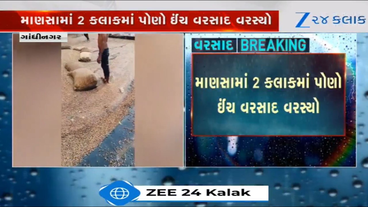 #Zee24Kalak Gandhinagar’s Mansa receives over 1.5 inches rains in past two hours; produces kept at APMC damaged