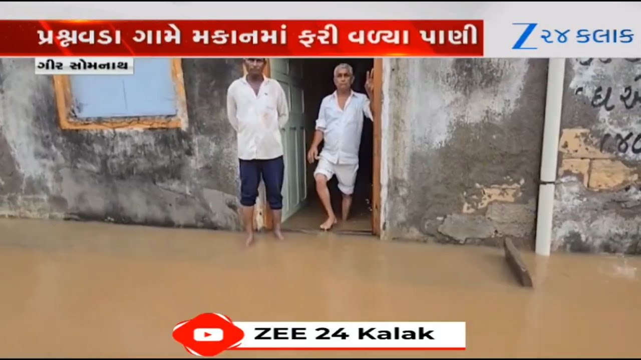 #Zee24Kalak Gir-Somnath’s Sutrapada receives 7 inches of rainfall; Prasnavada village severely impacted