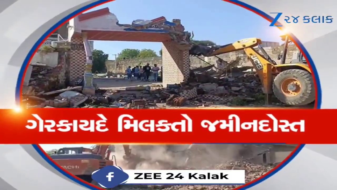 #Zee24Kalak Gujaratમાં દબાણકારો પર ફર્યું ‘દાદા’નું બુલડોઝર; Jamnagarમાં કરોડોની ગેરકાયદે મિલકત પળોમાં જમીનદોસ્ત