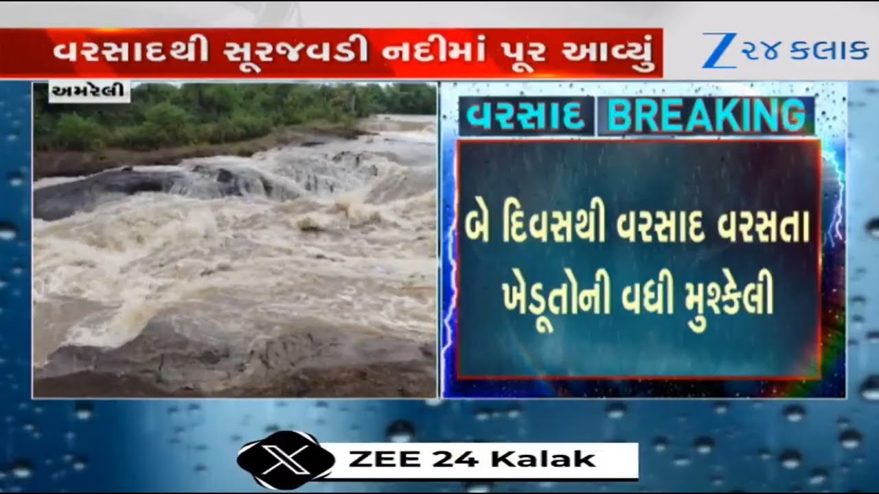 #Zee24Kalak Gujarat: Amreli’s Surajwadi river flooded as the region receives incessant unseasonal rainfall