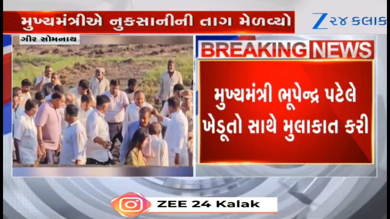 #Zee24Kalak Gujarat CM Bhupendra Patel reviews crop loss due to unseasonal rains in Gir-Somnath district