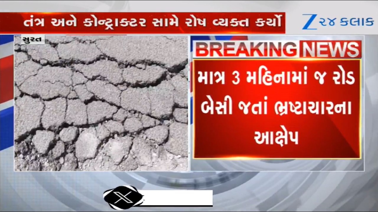 #Zee24Kalak Gujarat: Corruption smelled as road built just three months ago gets damaged in Surat’s Dindoli