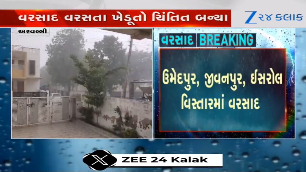 #Zee24Kalak Gujarat: Heavy unseasonal rainfall accompanied with strong winds reported in major parts of Aravalli