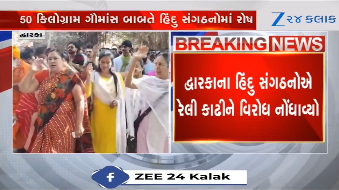 #Zee24Kalak Gujarat: Hindu organizations take out rally in Devbhumi Dwarka over sell of beef by mother-son duo