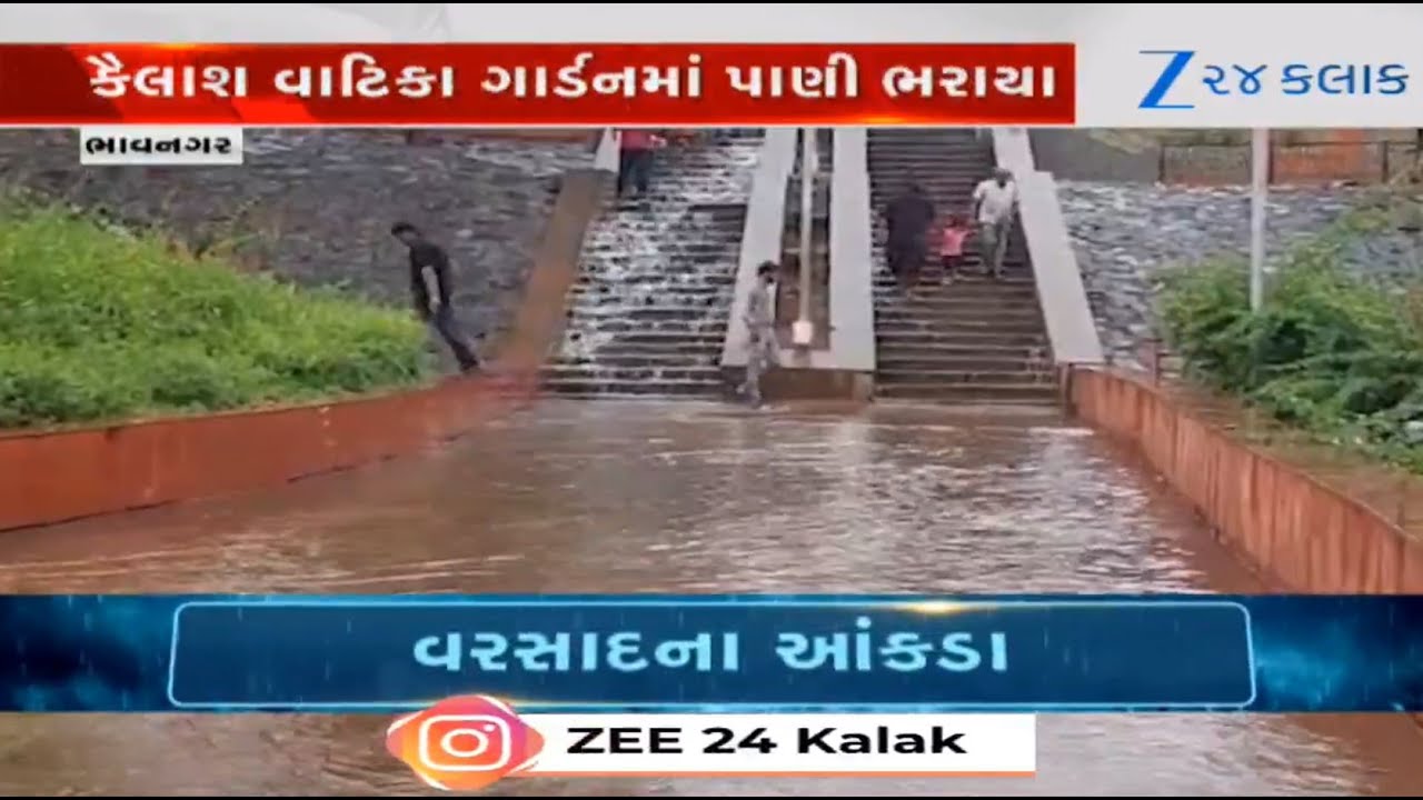 #Zee24Kalak Gujarat: Newly built Kailash Vatika garden waterlogged as heavy rain lashes parts of Bhavnagar