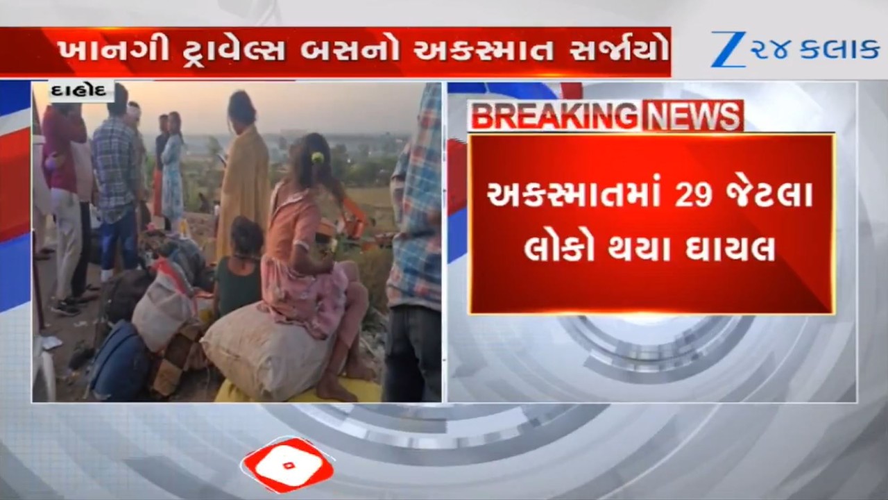 #Zee24Kalak Gujarat: Over 29 passengers injured as tyre of private bus bursts near Dahod’s Rabdal, hospitalized