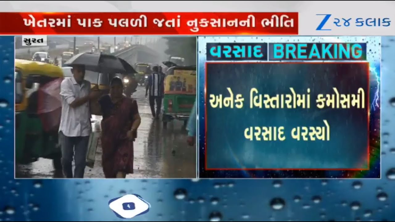 #Zee24Kalak Gujarat: Parts of Surat experiecing heavy unseasonal rainfall along with gusty winds, thunderstorm