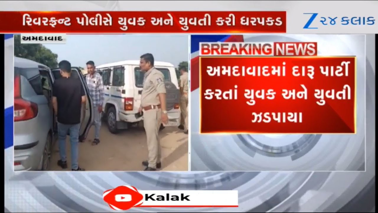 #Zee24Kalak Gujarat: Youth, girl arrested enjoying liquor party in car on Ahmedabad’s Riverfront road