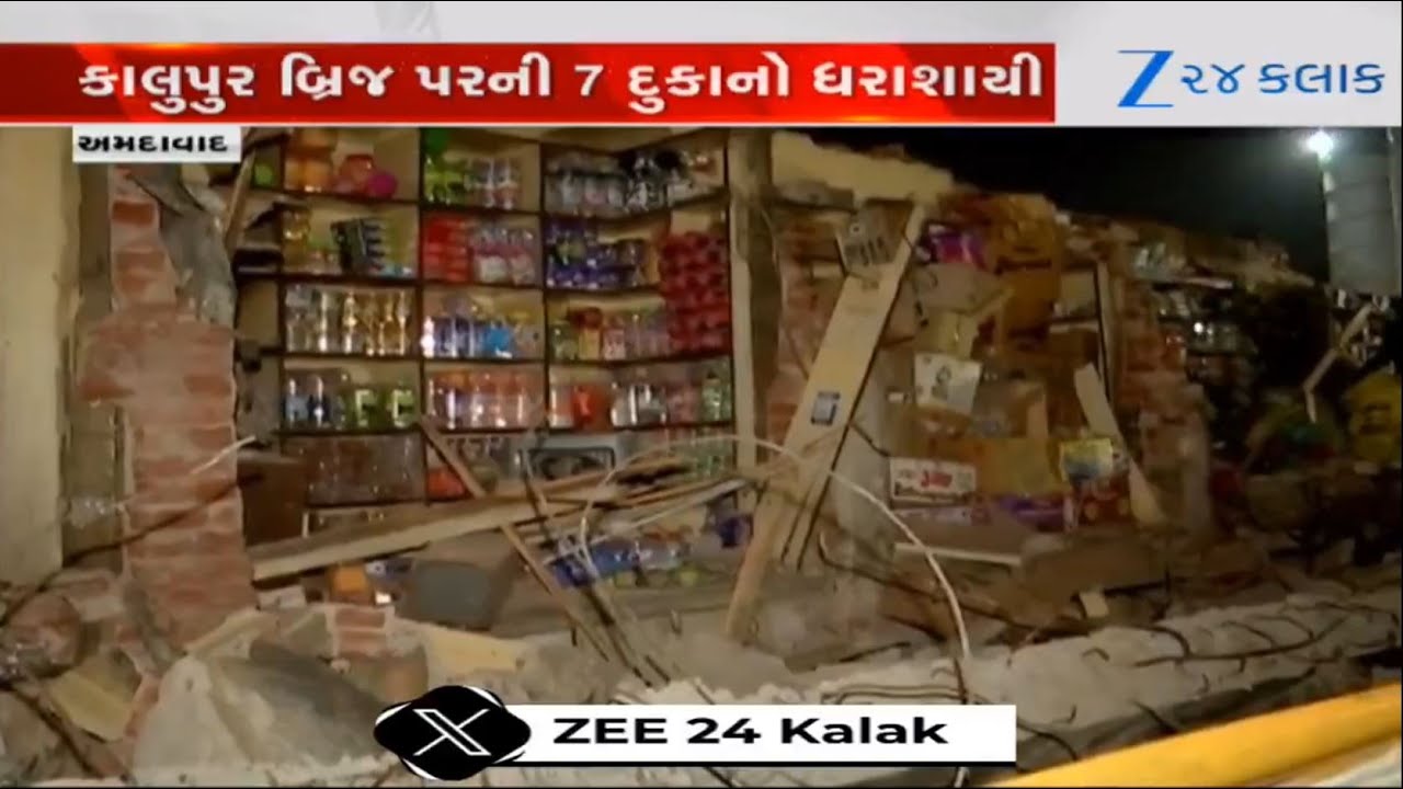 #Zee24Kalak Huge loss as seven shops near Ahmedabad’s Kalupur bridge collapse, no casualties reported