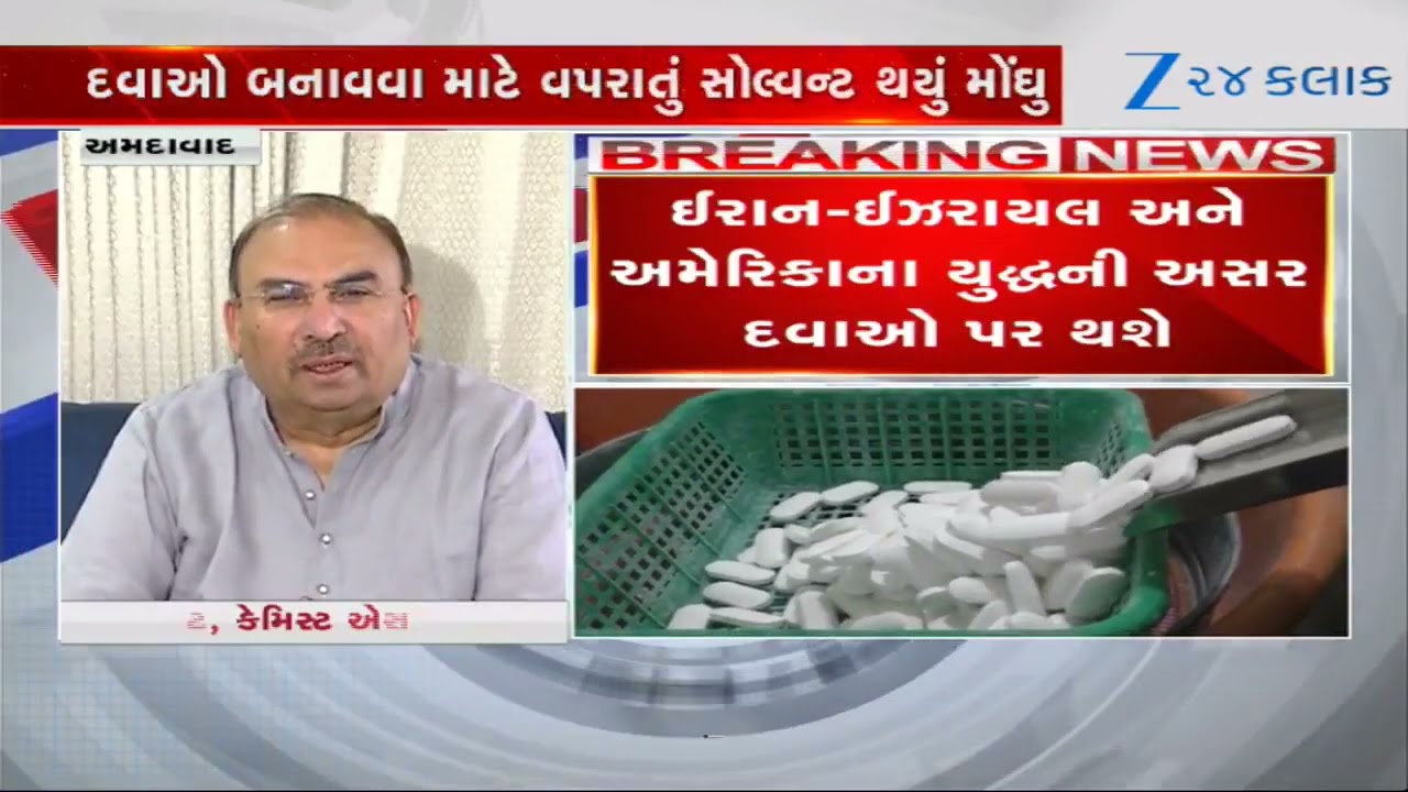 #Zee24Kalak Iran-Israel અને USના યુદ્ધની અસર દવાઓ પર થશે, દવાઓ બનાવવા માટે વપરાતું સોલ્વન્ટ થયું મોંઘુ