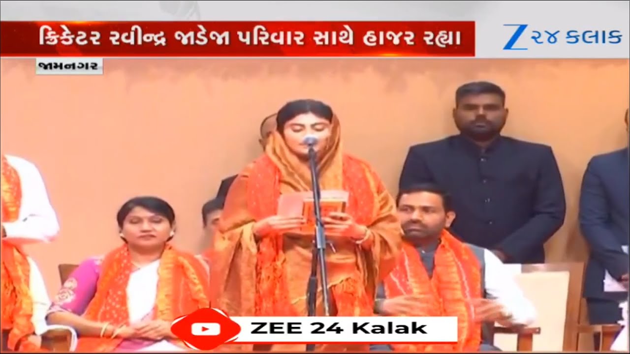 #Zee24Kalak Jamnagar: હાથમાં ગીતાજી અને માથે ઓઢી, પારંપરિક વેશમાં MLA Rivaba Jadejaએ શપથ લીધા