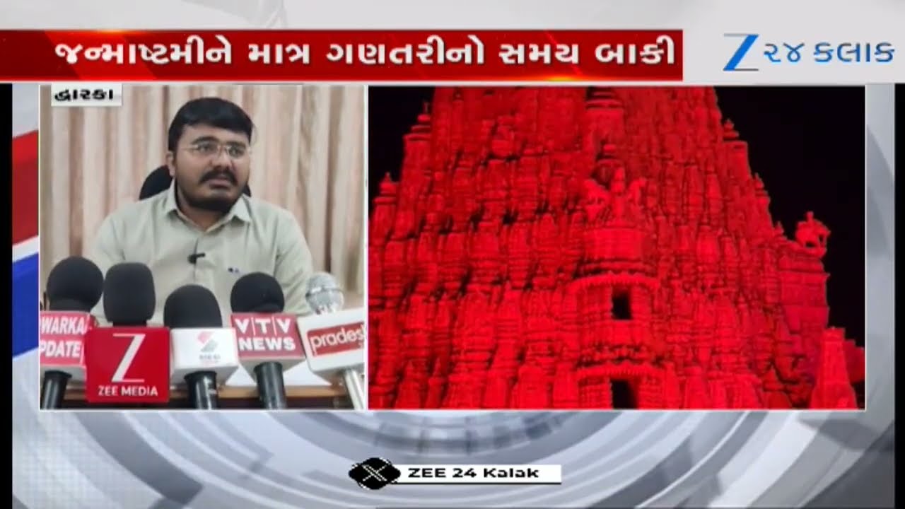 #Zee24Kalak Janmashtami પૂર્વે Dwarkaનું જગતમંદિર ઝળહળી ઉઠ્યું, સુંદર લાઈટોથી મંદિર શણગારવામાં આવ્યું