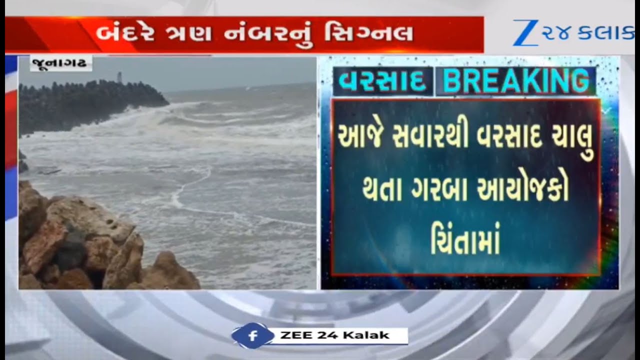 #Zee24Kalak Junagadh’s Mangrol pounded by 8 inches of rainfall in past 10 hours; signal number 3 hoisted at port