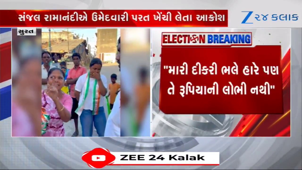 #Zee24Kalak LIVE: સુરતના કોંગ્રેસ ઉમેદવાર સંજય રામાનંદીએ ફોર્મ પરત ખેંચતા બબાલ, વૃદ્ધાએ વીડિયોમાં ઠાલવ્યો રોષ
