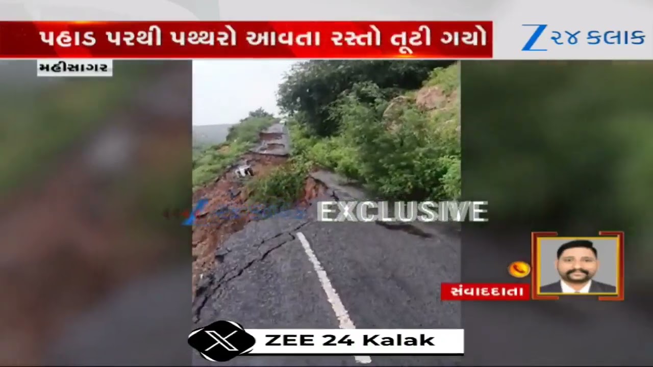 #Zee24Kalak Mahisagarના સંતરામપુરમાં ભૂસ્ખલનની ઘટના, પહાડ પરથી પથ્થરો આવતા રસ્તો તૂટી ગયો