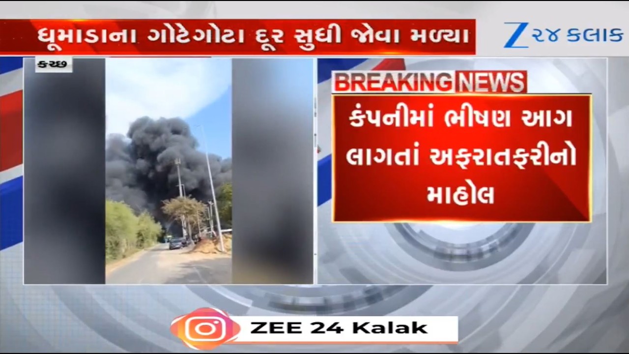 #Zee24Kalak Massive fire breaks out at garment company located in Kutch’s Kandla; fire tenders rush to spot