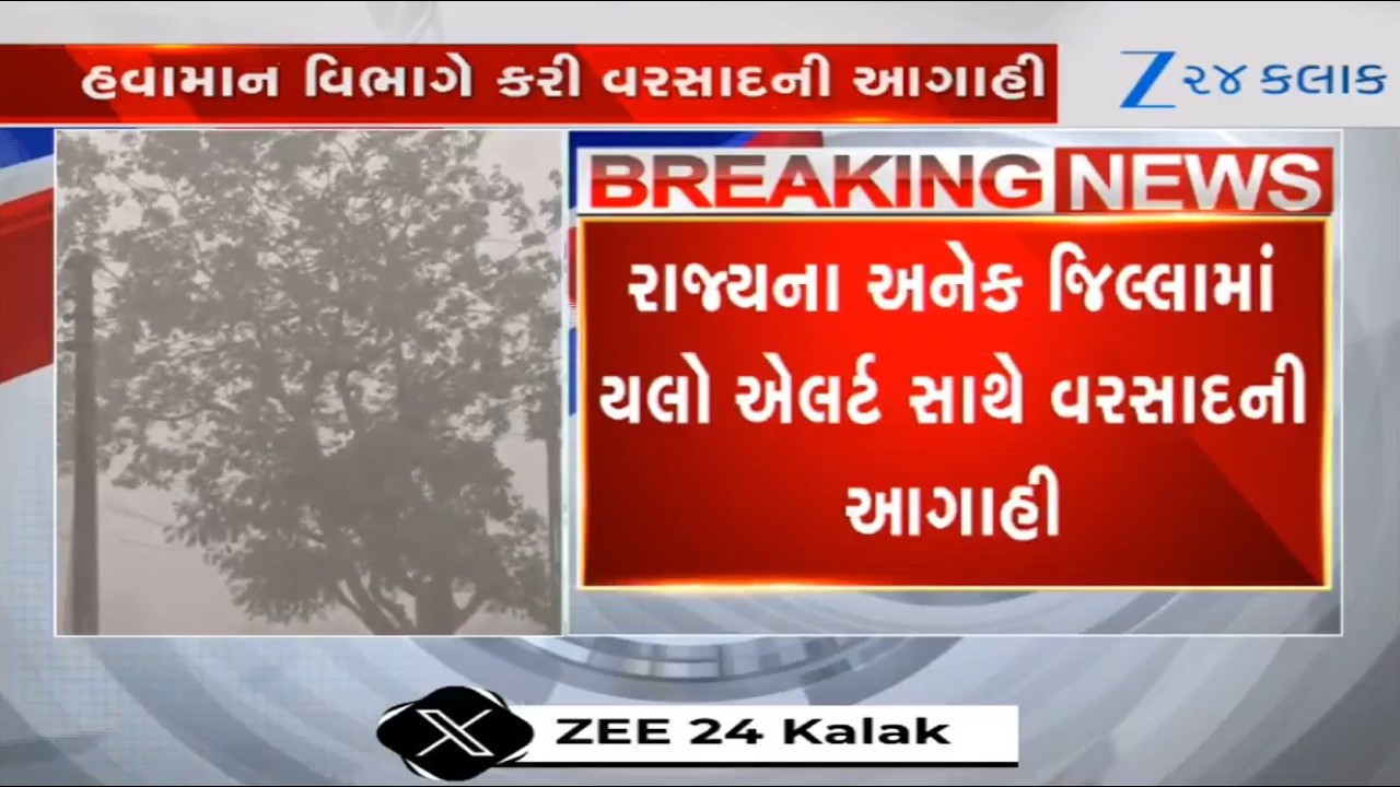 #Zee24Kalak MeT Dept predicts light to moderate rainfall with gusty winds, thunderstorm in parts of Gujarat