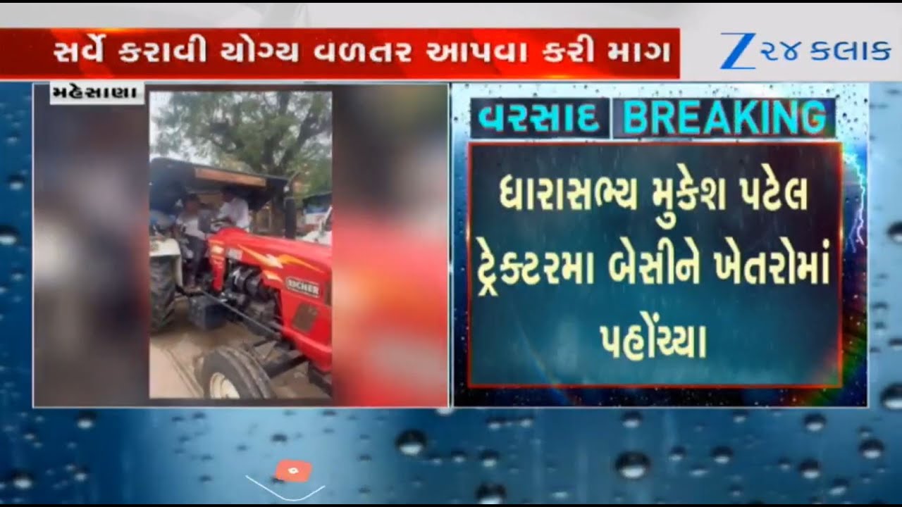 #Zee24Kalak MLA Mukesh Patel visits fields in Mehsana, reviews crop loss due to heavy rainfall in the region