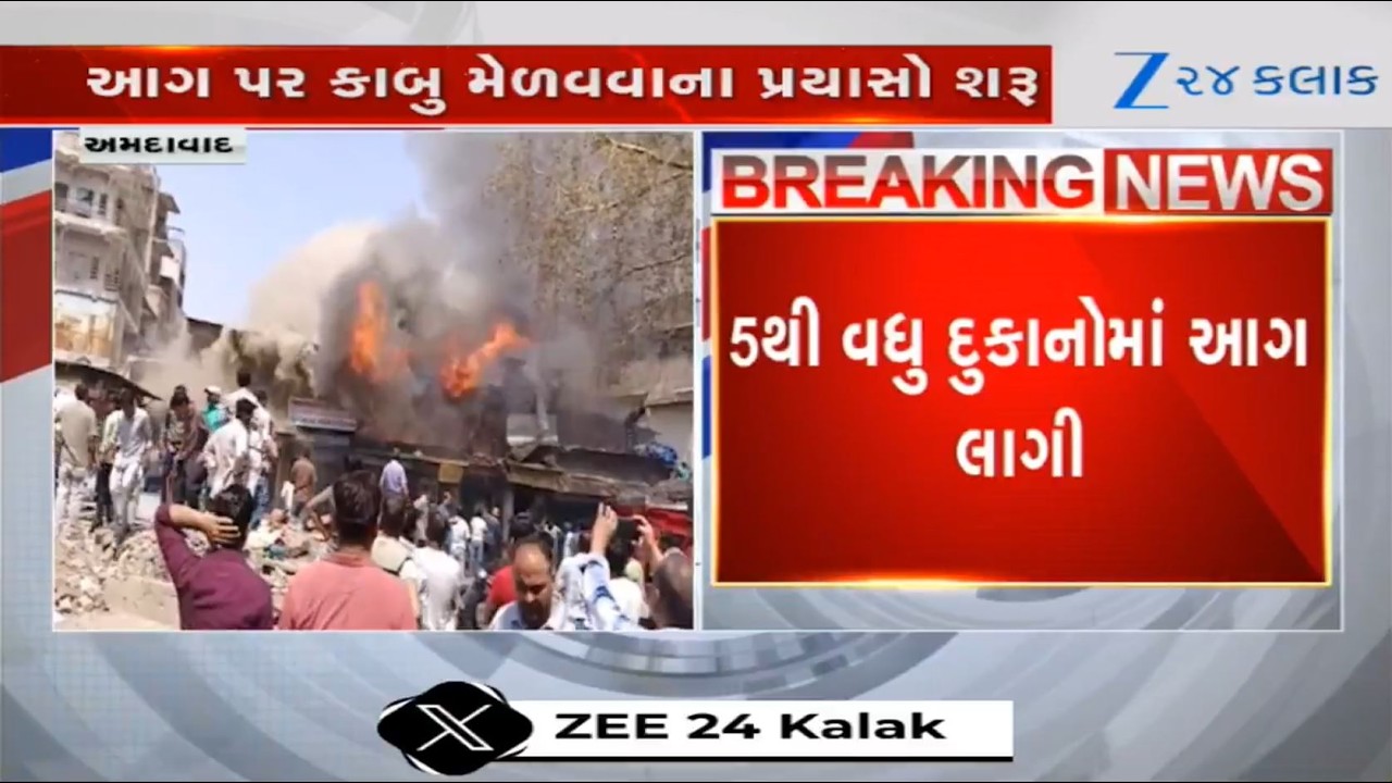 #Zee24Kalak More than 5 shops catch fire in Ahmedabad’s Panch Kuva area; fire tenders rush to the spot