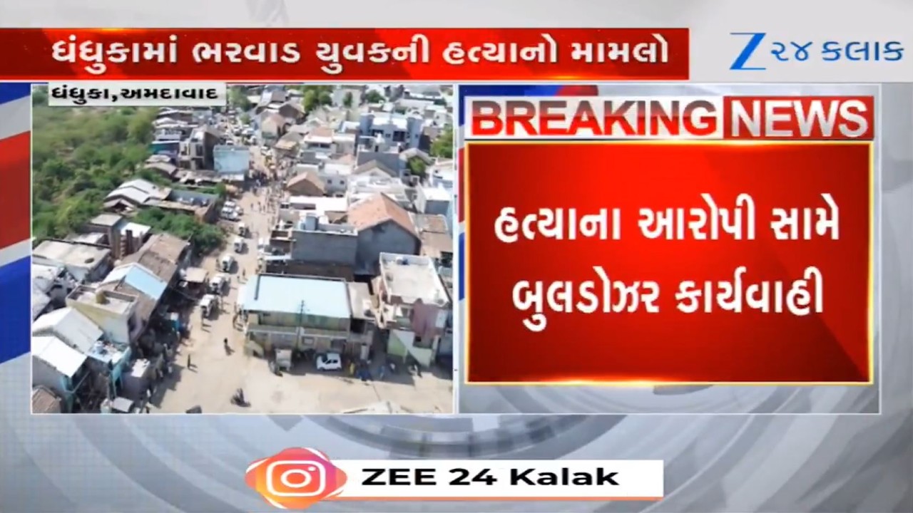#Zee24Kalak Murder of Bharwad youth: Drone visuals of demolition drive underway at Ahmedabad’s Dhandhuka