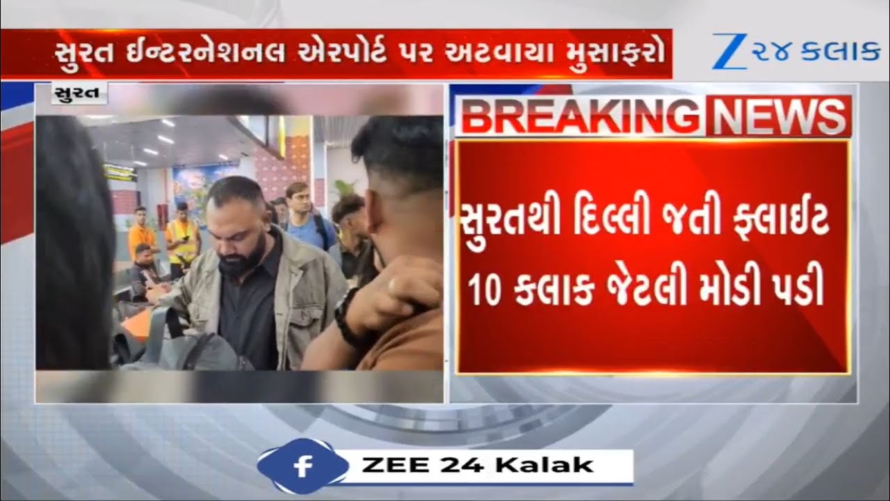 #Zee24Kalak Passengers create chaos at Surat Airport as Delhi bound flight gets delayed due to technical glitch