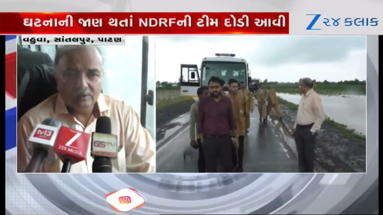 #Zee24Kalak Patanના સાંતલપુરમાં જળબંબાકાર, સાંતલપુરનું વહુવા ગામ બેટમાં ફસાયેલા 27 લોકો બહાર કાઢ્યા