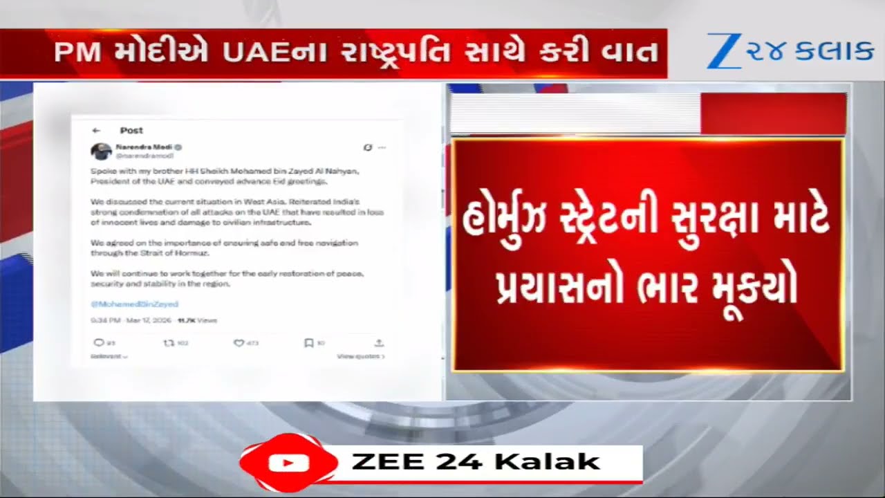 #Zee24Kalak PM Modi speaks to UAE President amid Iran war, discuss Strait of Hormuz, West Asia: ‘We will…’