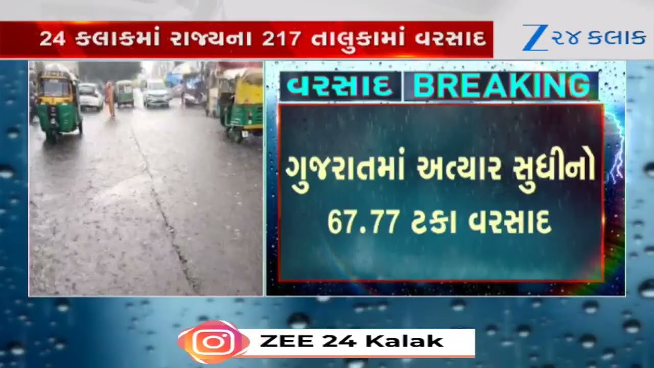 #Zee24Kalak Rain Data: Gujarat witnessed Heavy Rainfall in the past 24 hours, with 217 talukas receiving showers