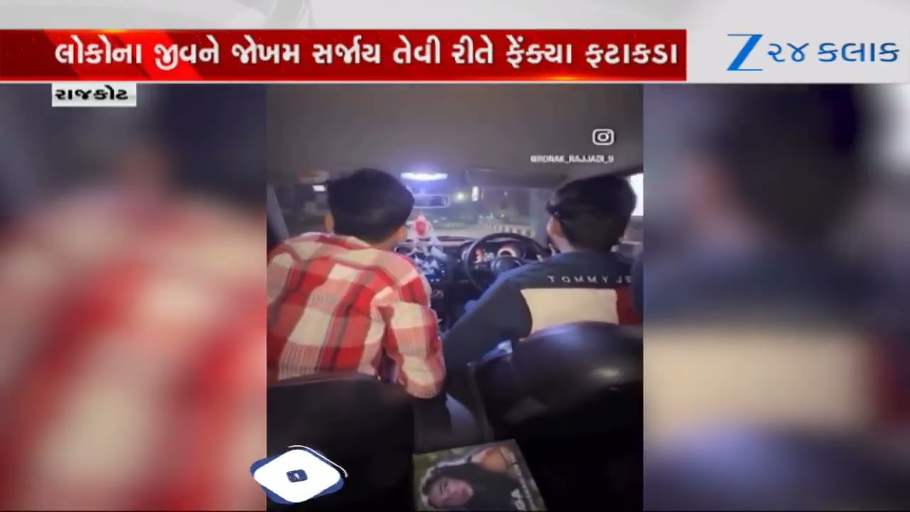 #Zee24Kalak Rajkotમાં Diwaliએ નબીરાઓએ ઉડાવ્યા કાયદાના ધજાગરા, ચાલુ કારમાંથી બોમ્બ સળગાવીને રસ્તા પર ફેંક્યા!