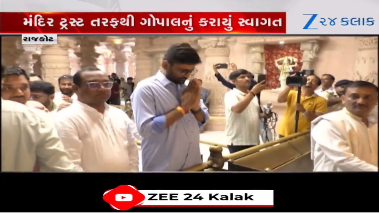 #Zee24Kalak Rajkot: વિસાવદરના MLA અને AAP નેતા Gopal Italiyaએ કાગવડ સ્થિત ખોડલધામ મંદિરે કર્યા દર્શન